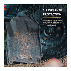 The 2018‑2023 Kia Rio All‐Weather Floor Mats are a full 4‑piece set made to protect the Rio’s carpeting through varied seasons. They’re custom‑molded to fit the Rio floors, including raised edges to trap snow, mud, water, and debris, which helps keep moisture off the carpet and prevents it from migrating under the mats. The material is durable and easy to clean, usually can be hosed off or wiped down—and the backing is designed to grip the vehicle’s factory anchoring system to reduce slipping and shifting.